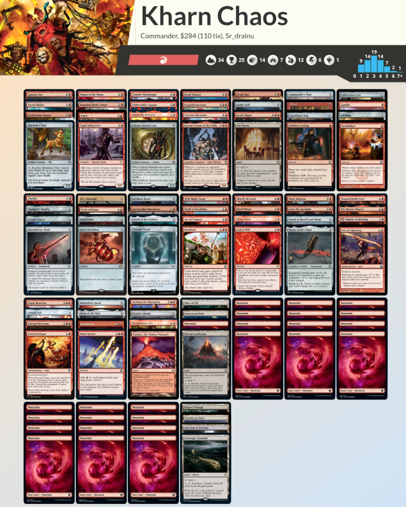 Kharn es un comandante demasiado caótico, y así es su mazo. Pero he intentado que dentro de este caos, al menos yo esté algo mejor preparado que mis oponentes para sacar ventaja.
