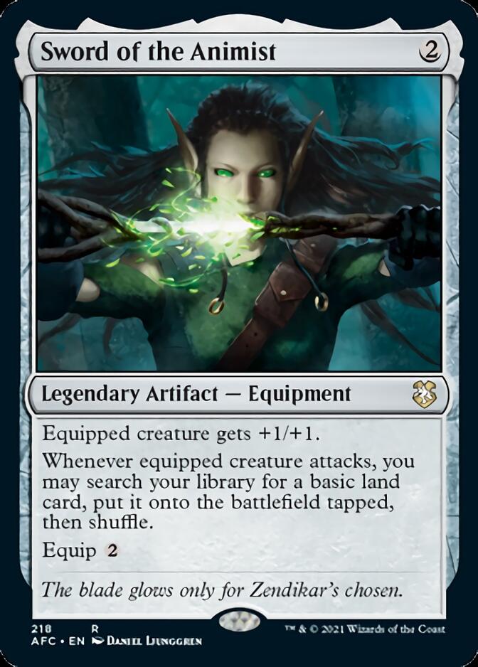 Con la tierra, controle quién controle a Kharn, podrás regresártelo a tu mano para volver a jugarlo bajo tu control. Con la espada equipada, sea en la criatura que sea o en el propio Kharn, a parte de buscarte tierras cada combate, si quiere puedes exiliar a Kharn para que vuelva al juego bajo tu control.