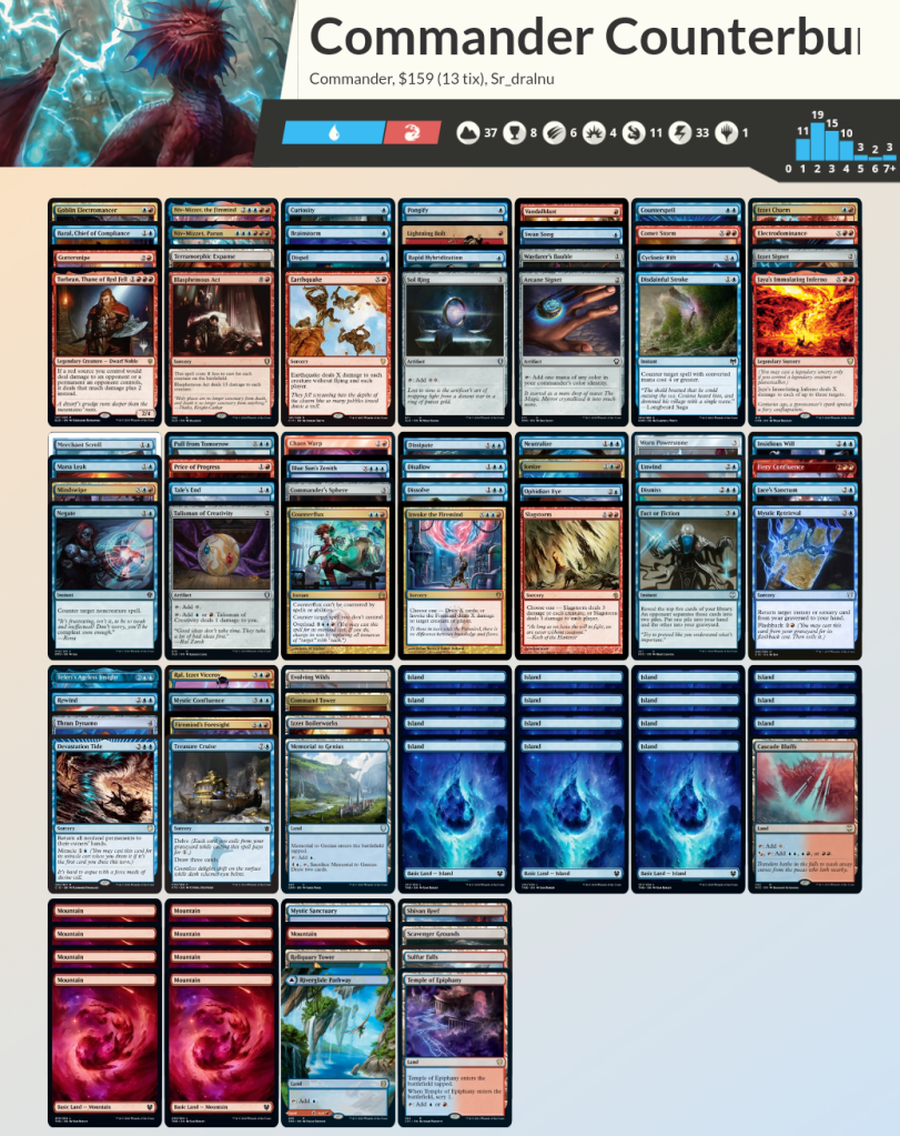 Y como la cosa va de «instants» y «sorceries», pues lo que es criaturas… el mazo tiene pocas (Menos bocas que alimentar).