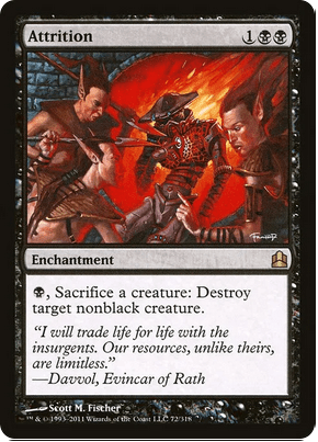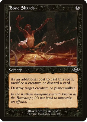 Empezamos los no permanentes con cartas que aprovechan que sacrifiquemos criaturas para destruir criaturas o planeswalker, atacar manos rivales o robar muchas cartas.