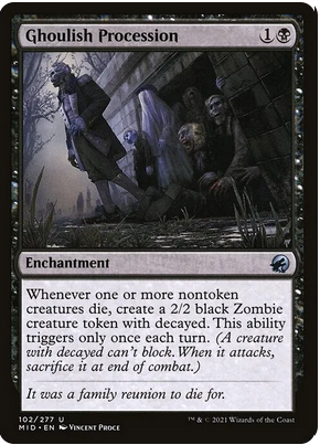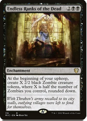 Queremos tokens, muchos tokens, oleadas de tokens. Para pegar con ellos, sacrificarlos, aprovechar sus habilidades… para todo. Y estas cuatro cartas nos generan zombies en mantenimiento, cuando muere un bicho por turno y encima los multiplican. Fundamentales al deck y con costes muy asumibles de maná.