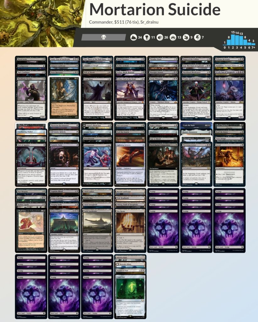 Y aunque el mazo funciona bien con los poderosos hechizos que nos hacen perder vidas a cambio, la gracia está en ir llenando la mesa de tokens 2/2 menace, así que debemos proteger a nuestro comandante. Además de que tiene coste 6, si nos lo matan mucho, va a ser difícil rejugarlo.