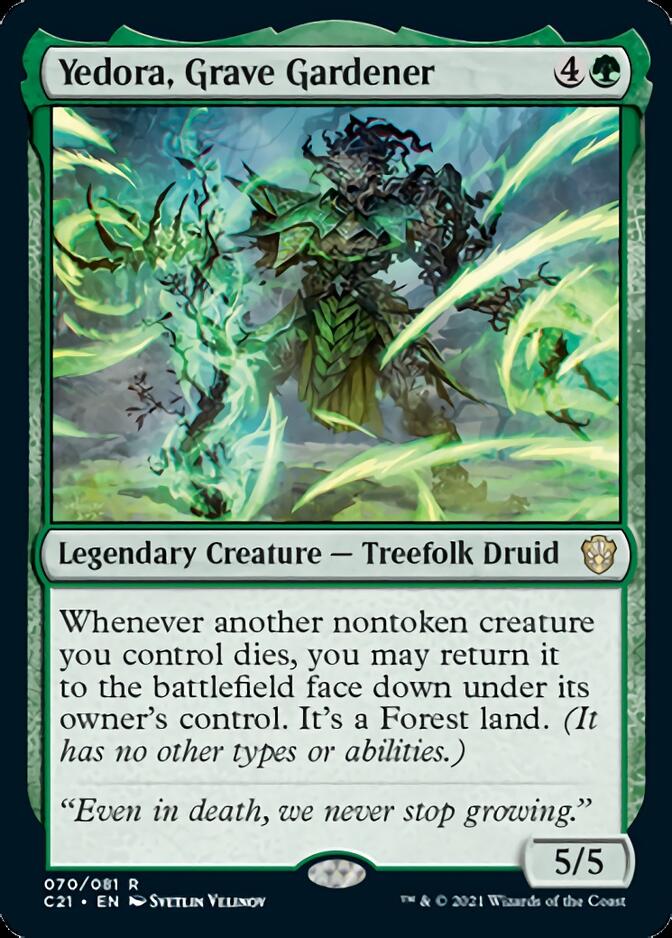 Y si nos quedamos sin fuelle, siempre podremos reutilizar cartas que ya hayamos usado. Con Yedora, además, reutilizaremos CADA criatura que se nos muera, ya que siendo bosques BOCA ABAJO, podremos darles la vuelta con su habilidad de Morph.