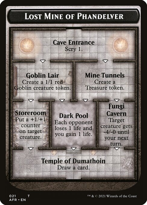 Empezaremos por el mazmorreo. Es la base del deck y supone el moto inicial de robo y de interacciones. Varias sinergias como al entrar criaturas al campo de batalla te adentra en las mazmorras, al morir, al hacer daño o al atacar. Tambien contamos con auras y hechizos que hacen diferentes efectos además de darnos el mazmorreo. Los MVP son tanto Hamar Pashar como el dungeon delver, por disparar 2 veces las salas de mazmorras. Ellywick encaja perfectamente en este deck y es fántastico con su ulti.