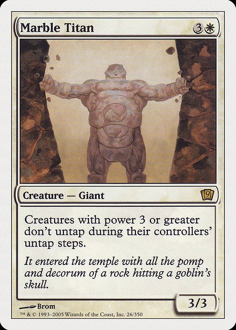 Empecemos con las criaturas. Algunas nos darán algo de control, como el marble titan o tutores de auras como la heliod pilgrim pero lo principal es su alta resistencia.