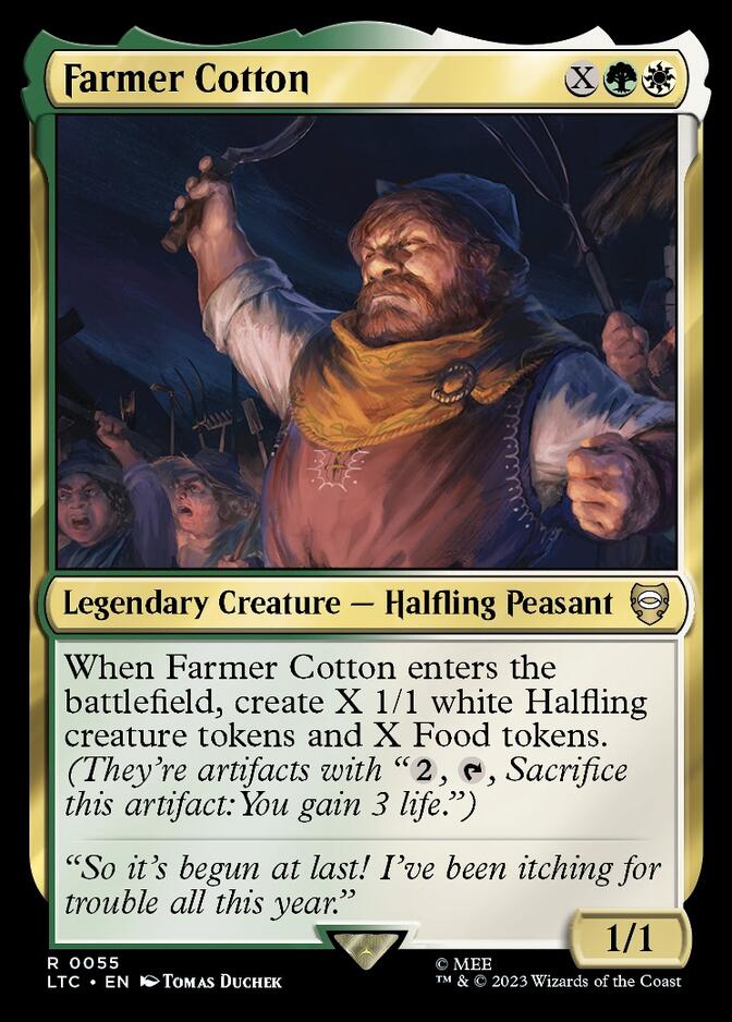 Aunque lo principal sean los Food Tokens, el mazo tiene cierta sinergia con los Tokens en general, así que no vienen mal este rampeo en forma de tesoros. El provisioner nos permitirá generar Food o Tesoro a nuestra elección. Academy Manufactor también nos dará Tokens de pistas para robar cartas. El Innkeeper es tribal y nos hace ganar vidas, que también es sinérgico. Y Lotho lo metemos porque es tribal, pone tokens, es del set y encima es que es muy bueno.