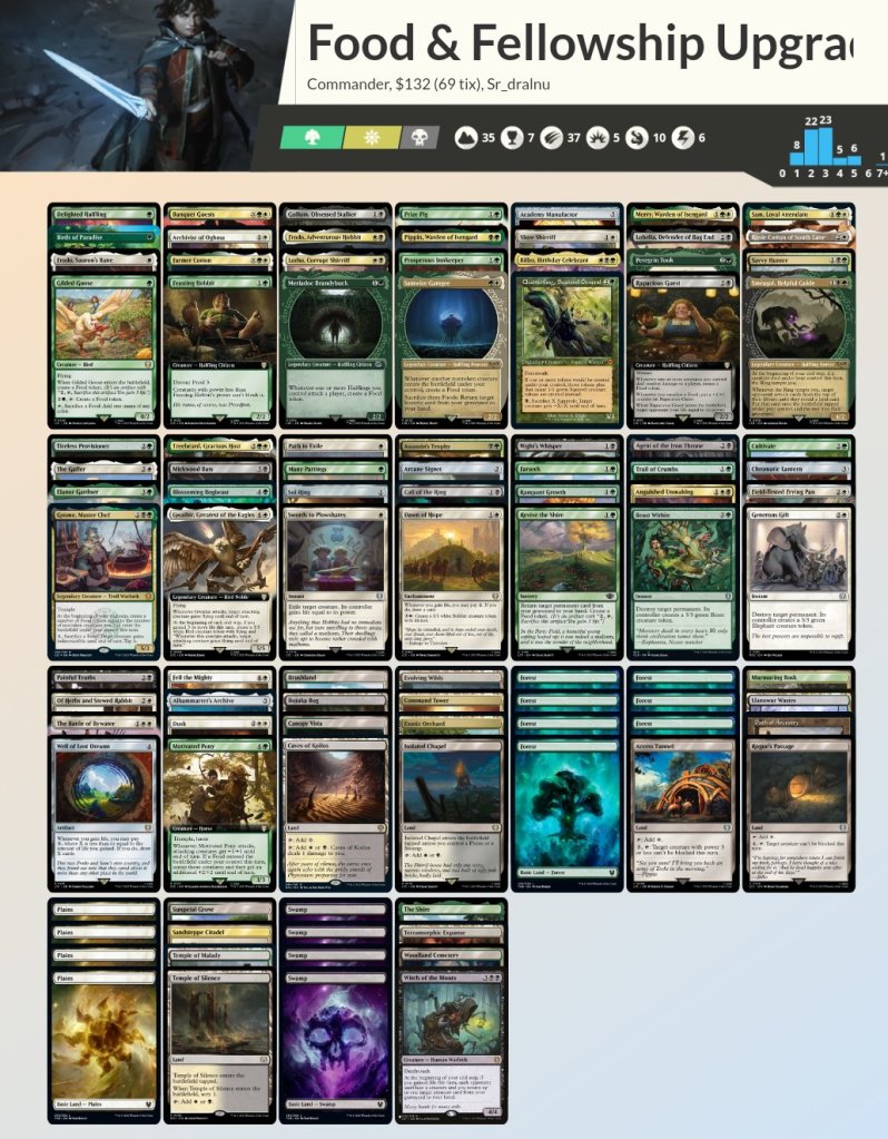 «Pero… ¡¿Esto que es?!» Os preguntaréis. Ya sé que aquí habéis venido para ver un upgrade usando SOLO cartas del set de El Señor de los Anillos. Pues bien, tomad nota por las sustituciones que hay que hacer. Todas las cartas las podréis encontrar en el set principal o en los mazos preconstruidos de Commander: