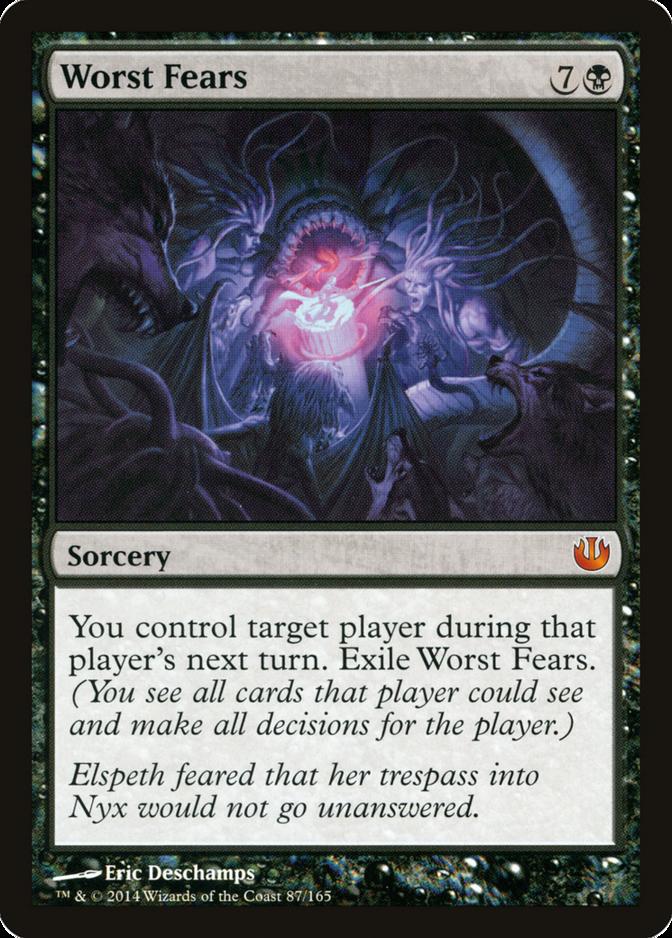 Sin menospreciar a los instantáneos y conjuros anteriores, ya que son buenos y encima podemos «reanimarlos» para seguir usando sus efectos… Pero lo divertido, el motivo por el que alguien se montaría este mazo, es para jugar hechizos grandes y poderosos, de grandes costes, para «trampeándolos» desde el cementerio.