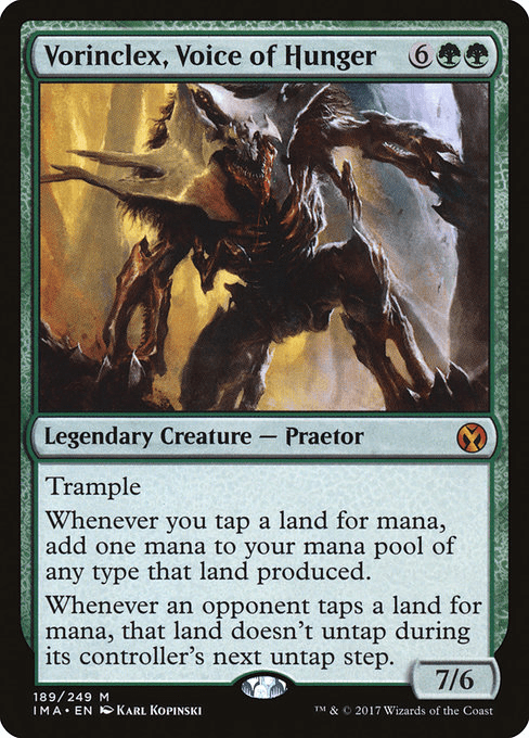 Y esto es todo, aderezado con unas cuantas tierras simic y básicas, el mazo es puro rampeo hasta la traca final garantizada. Lo cierto es que, la oferta del 2×1 que Imoti ofrece, solo lo disfrutará uno, su controlador, pero os puedo asegurar, que las risas están garantizadas en la mesa. Podría ser mucho más agresivo o estar más equilibrado. Peca de no tener ni un solo removal más allá del Fango ácido o de Brinelin, pero, para partidas de Tontines, es un mazo que no solo gana, si que gana, con una sonrisa.