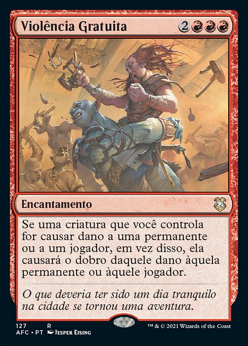 Comencemos ahora por las criaturas de coste 2/3. La prodigio armonica nos dara un trigger adicional en Delina por lo que pondremos más copias. El rompe caras nos dará bastantes tesoros porque cada copia triggerea cuando se daña al oponente y además nos da cartas si sacrificamos tesoros. La campeona nos dará atacar 2 veces a Delina y la pondrá contadores para que golpee más fuerte y evitar que muera bloqueada. Arni nos triggerea con las copias que pongamos asi que si ponemos la copia de una criatura de coste 6, podríamos poner de la mano una criatura de ese coste o de menos, pagando solo 2 manas. El goblin actúa de removal de criaturas pequeñas y pw molestos. El bárbaro hará de removal de artefactos o nos dará tesoros.