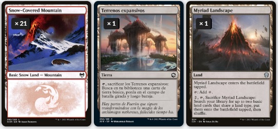 Por último, las tierras son muy diversas. Desde dar mana adicional, robo, daño, etc… El uso de nevadas es porque las amo y ya.