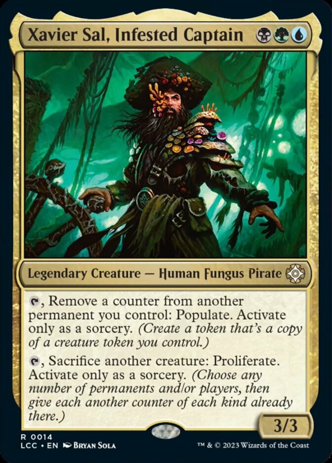 Sé que un comandante es bueno cuando me cansa imaginarme su mazo. A ver, no me malinterpretéis, este tío tiene mucho potencial y seguro que hasta se le pueden sacar combos, lo que pasa es que debe ser de esos que al final te sale humo por las orejas de tanto pensar. La cuestión con este pirata es si te centras sobre todo en populate, en proliferate o en una mezcla de ambas cosas. La mezcla es complicada, ya que populate funciona mejor con tokens grandes, pero puestos a sacrificar criaturas para hacer el proliferate, mejor que sean tokens de criaturas pequeñas para no sufrir muchas perdidas. En cualquier caso, tiene buenos colores para usar muchos trucos sinérgicos con contadores y tokens