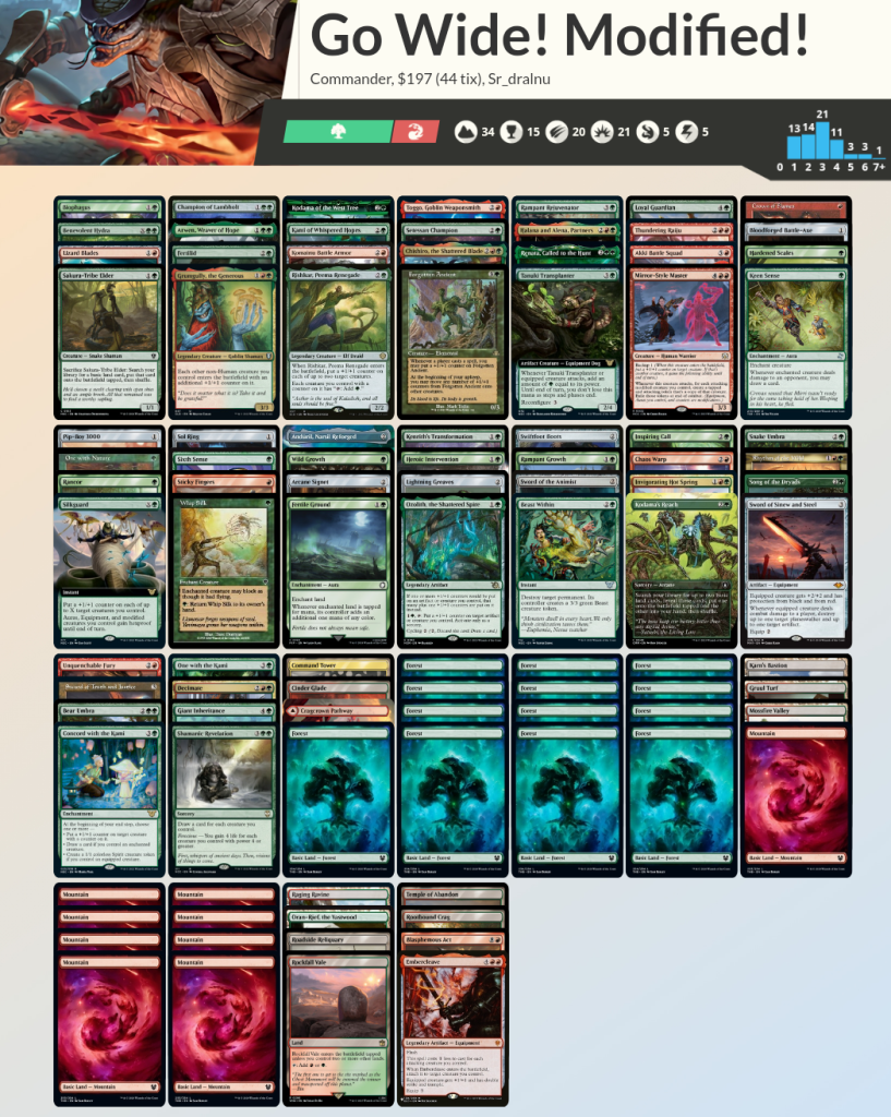 Siempre se podría hacer una Voltron clásica, atacando solo con Chishiro y modificándolo solo a él pero que, de paso, te regala tokens para defenderte. Aunque creo que es más divertido ir generando mucha presión en mesa tanto en cantidad de criaturas como en el tamaño de estas.