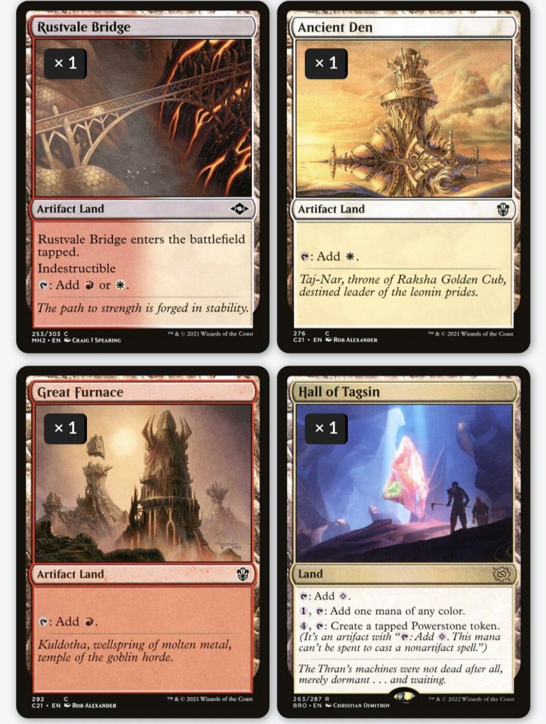Piedras de maná. Muy necesarias para este deck. Además podemos sacrificarlas para robar o petar permanentes, si es necesario.