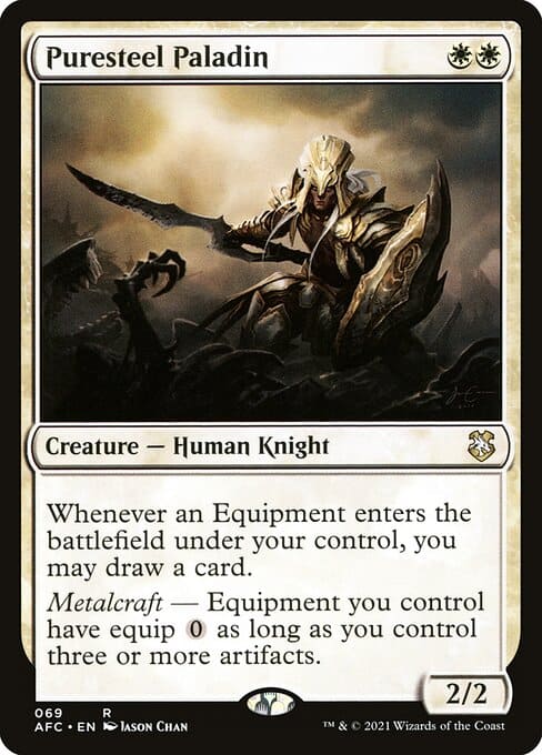 El grueso de artefactos interesantes es con coste 3. El crawlspace para evitar que nos ataquen muchas criaturas. El kirin para no perder la partida y volar. La túnica nos dará muchísimas cartas al pegar con ella. El martillo para ganar bien de vidas. El acero esculpido para copiar cualquier artefacto que nos interese. Las espadas son las que tengo y nos darán mucha protección y efectos diversos. La espada de verdad y justicia puede parecer mala en este deck pero realmente nos dará mas ventajas que desventajas. La cota de mithril para proteger bien a Ayesha.