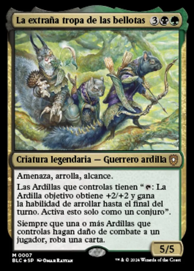 La extraña tropa de las bellotas, un simpático grupo de roedores viene cargadito de habilidades. Amenaza, arrolla & alcance. Hace que todas nuestras ardillas se den apoyo entre si & como bonus si conseguimos hacer daño, robaremos carta. Vamos, una multiardiusos en toda regla.