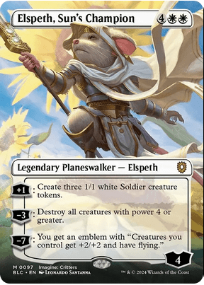 Si nos dan una planeswalker ratona, se mete y no se discute. Ahora entrando en detalle, puede darnos cuerpos útiles, ser una buena ira de dios o si llegamos al 7, darnos un emblema de ganar partida. No sobra en el deck su versatilidad, aunque duele su coste de maná.