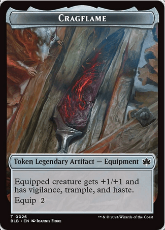 La segunda habilidad nos crea Cragflame, una espada muy cuqui que da +1/+1, prisa, vigilancia, arrollar y te hace la cena equipando por dos. Permite a casi cualquier ratón que tengamos pegar en su turno de bajada así como saltar sus triggers de ser afectados por la habilidad de equipar.