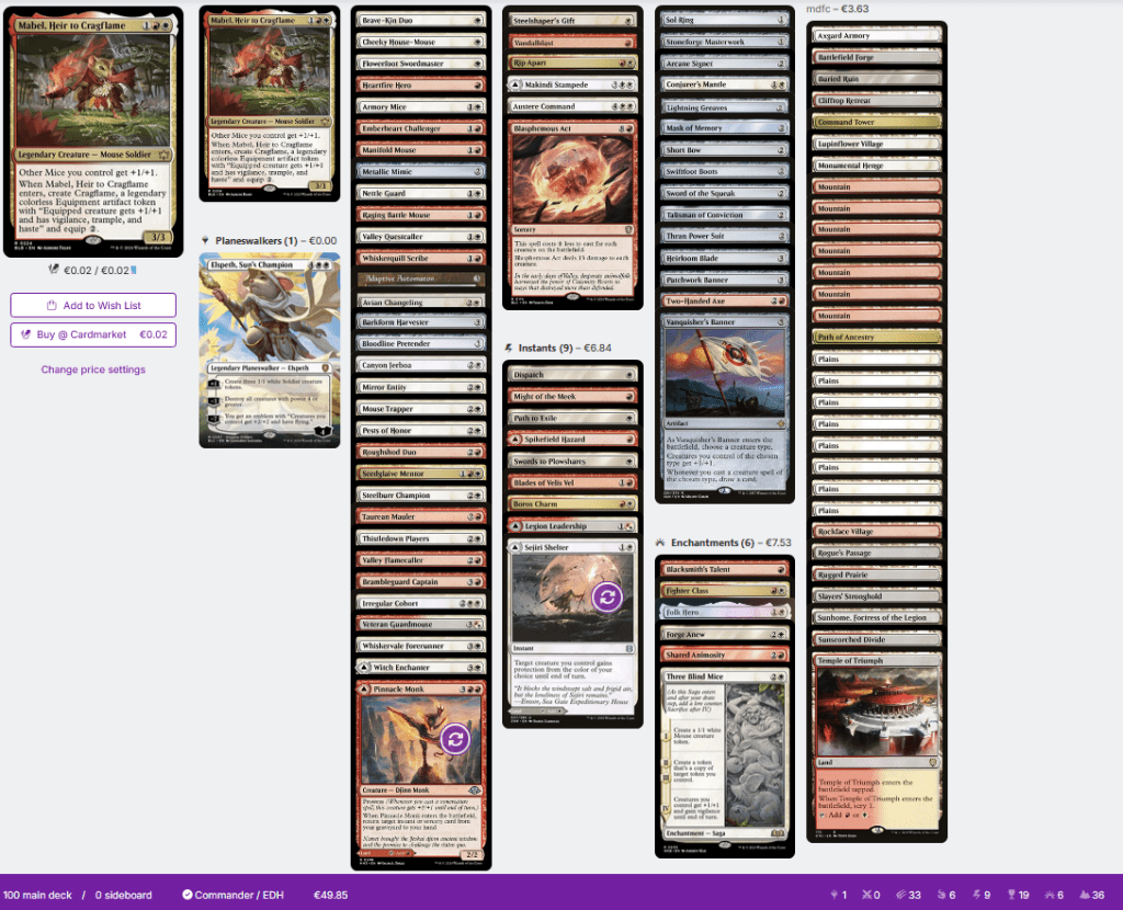 Por tanto tenemos un comandante que si bien no desentona en la baraja, no es determinante para la victoria en la misma. Y con todo, sigue siendo el mejor comandante de ratones que por el momento tenemos. No obstante, las demás cartas aunque sea un deck Budget ayudaran a marcar la diferencia.