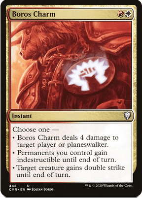 Los instantáneos son los staples habituales como path to exile, swords to plowshares y el boros charm. Piezas baratas pero capaces de cambiar una partida por completo rompiendo la carta adecuada.