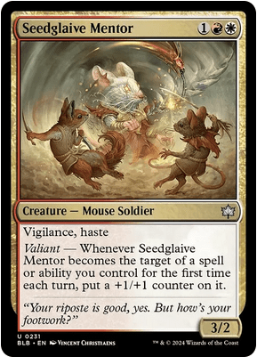 Por 1WR tenemos un 3/3 a pelo sin habilidades propias. Unos números decentes. Su primera habilidad pasiva es dar +1/+1 a todos los demás ratones que controlamos, lo que lo convierte en un buen lord de ratones, un auténtico Jefazo (para los más jóvenes, buscad Hamtaro).
