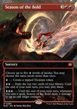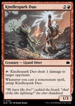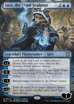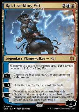Vale, sí. Os preguntaréis porqué está Kasmina aquí. Si no sabéis su lore, es la avanzadilla de un plano aún desconocido que está reclutando a los hechiceros más poderosos y se vió inmersa en la Guerra de la Chispa en Rávnica. Por lo visto, su misión no está clara pero puede que esté buscando a hechiceros en el plano de Bloomburrow, especialmente a las nutrias debido a su enorme potencial. Sobre todo, con la escurridiza Bria.