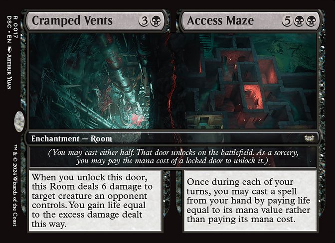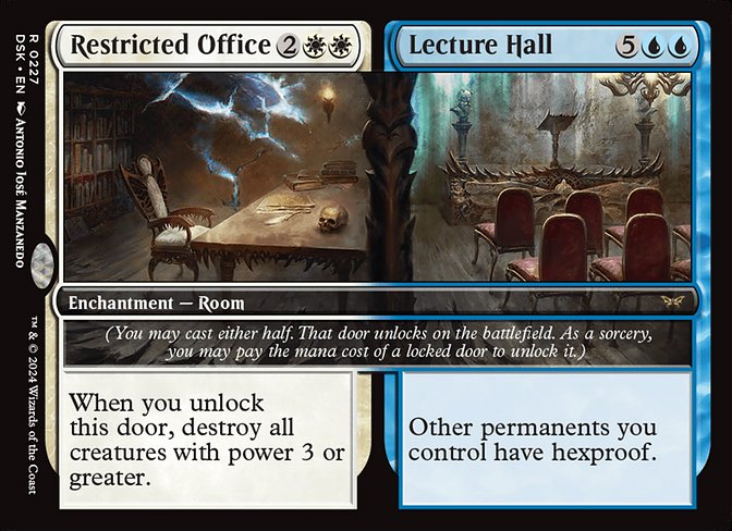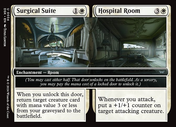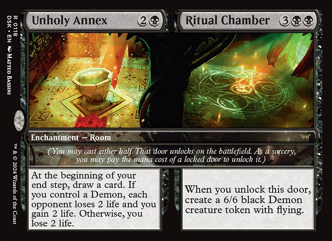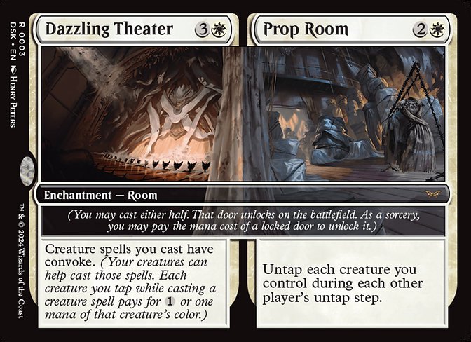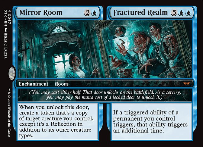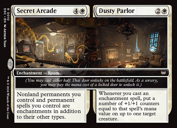 Me gustaría hablar primero de las habitaciones en este decktech porque es de lo que va el mazo. Las habitaciones son encantamientos con un plus. Ese plus es abrir la otra parte del encantamiento como conjuro pero no puede ser respondido. Es una habilidad especial. Igualmente si pones en juego sin castearlas, es un encantamiento sin coste hasta que abras una habitación. Desde robar cartas, ser removal o reanimator. Nos van a dar una muy buena ventaja y muchas sinergias fuertes. Hasta hay combos con el secret arcade para hacer todo encantamiento y tener infinitos triggers con la Gremlin Tamer por ejemplo. Una vez abiertas las 2 puertas, su cmc es el de los 2 costes, asi que tendremos criaturas muy fuertes en mesa con muchas habilidades poderosas. He usado todas las habitaciones de estos colores sean buenas o malas, porque el deck es de habitaciones y hay que usarlas a tope.