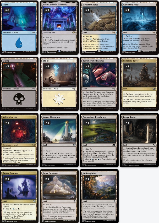 Encantamientos que no sean habitaciones tenemos convertir en muñeco para inutilizar comandantes. El nowhere para hacer objetivo a las criaturas de manera mas fácil. Las invocaciones de estrid para copiar habitaciones y abrirlas. El grasp para quitar problemas. La corte para copiar habitaciones pero si somos monarca pues haremos tokens asi que mucho mejor. El boon con tanto encantamiento hará que las habitaciones peguen muy fuerte. La esfera para evitar que nos peguen y el cielo de nyx para reanimatorm y ayudar a pegar si no esta Zur. Muy buenas elecciones como podeis ver.