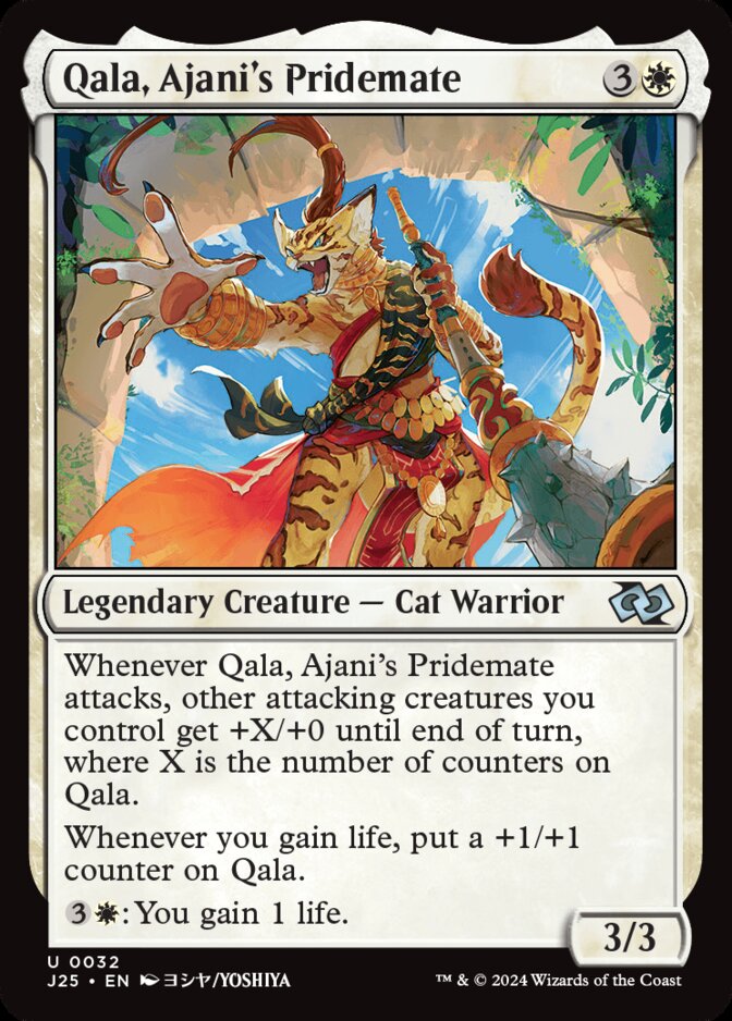 Por 3 manás un 2/2 sin más habilidades de combate se siente un poco pobre. Su habilidad de poner tokens de gatos 1/1 al entrar él u otro gato (NO TOKEN) es decente, pero no sé… Se siente más como un «lord» tipal que como un comandante. Aún así, en monoblanco hay mucho soporte para las estrategias de tokens, y también mucho gato decente, así que se puede hacer un mazo efectivo. Habrá que ver cómo abusar del «entrar en juego»… O efectos de blinkeo (exiliar y volver a entrar) o simplemente buscar gatos de costes bajos para ir jugando muchos. Esto último funcionaría bien con el efecto himno (+1/+1), que busca llenar la mesa.