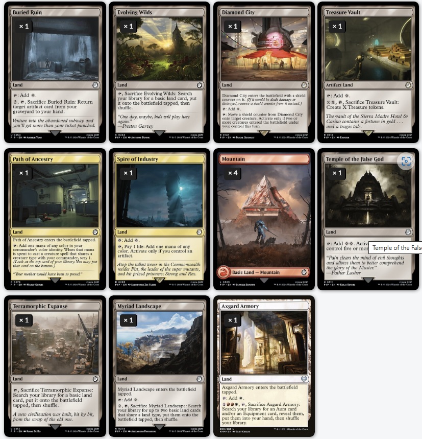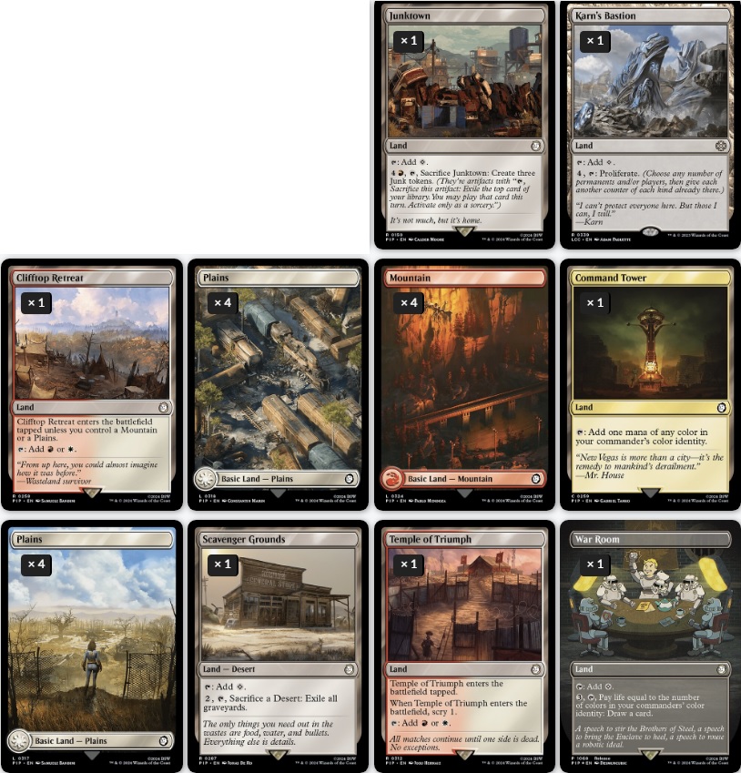 Buenos días. Traigo a Moira Brown desde Megaton para poder hacer la mejor guía de commander del mundo. Usaremos mayormente cartas de Fallout para ello porque me encanta usarlas y es la mejor excusa. Ahora bien, tiene una proyección de mejora enorme si usamos cartas de cualquier set. Las estrategias son sencillas, usar todas las cartas posibles con quest counter y usar humanos, ya que hay sinergias para ellos interesantes. Tambien por supuesto la idea es la de crear infinidad de guías, ya que no son legendarias, y hacer que toda criatura tenga una guía para golpear con fuerza.