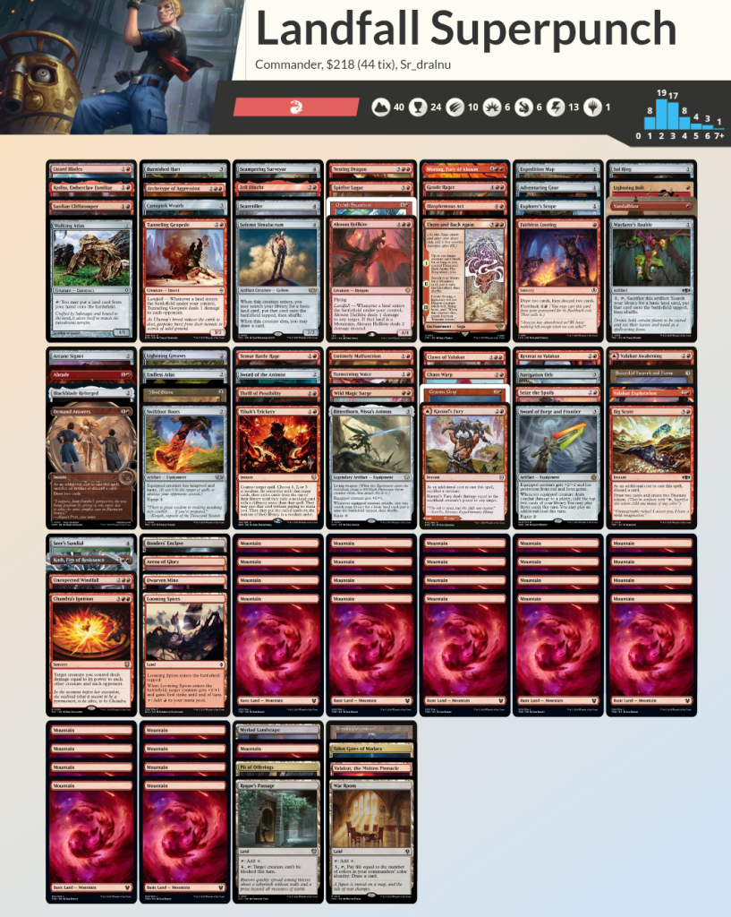 ¡Hola Tontines! Hoy os traigo un mazo bastante único. Ya que es un mazo temático de tierras y landfall, pero usando un único color: rojo.