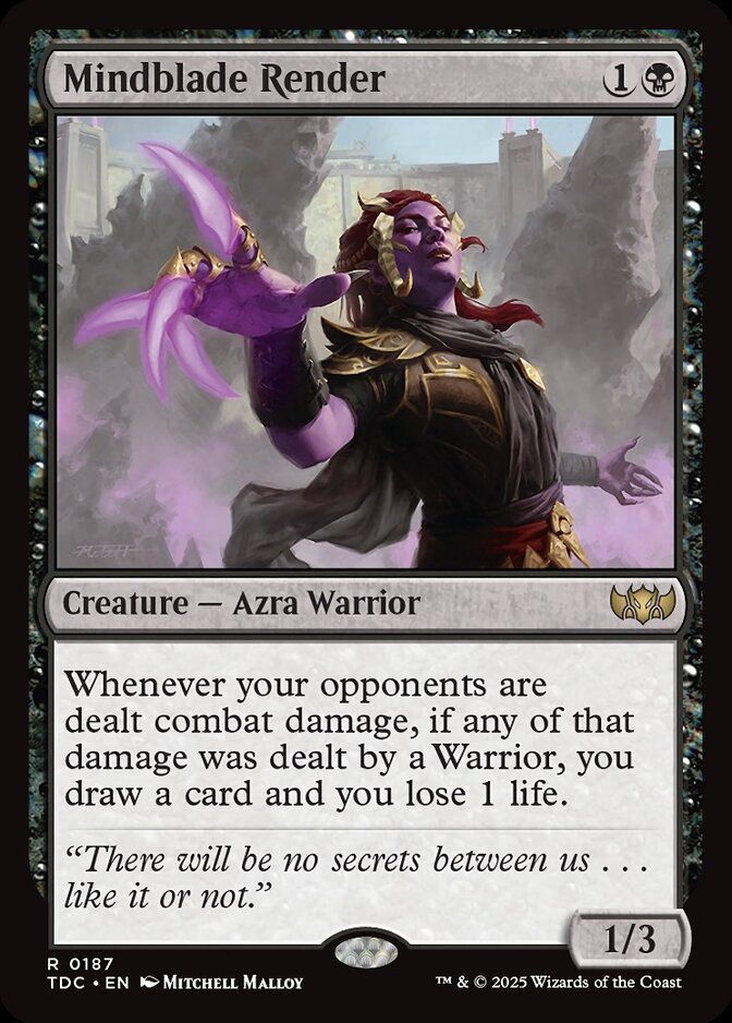 Este Rogue hará que todos nuestros bribones y, gracias a los contadores que coloca la comandante, el resto de criaturas, descarten carta cuando dañen. Tenemos un mazo con muchas criaturas pequeñas, todo lo que sirva para frenar el juego rival mientras aceleramos en el nuestro, será bueno.