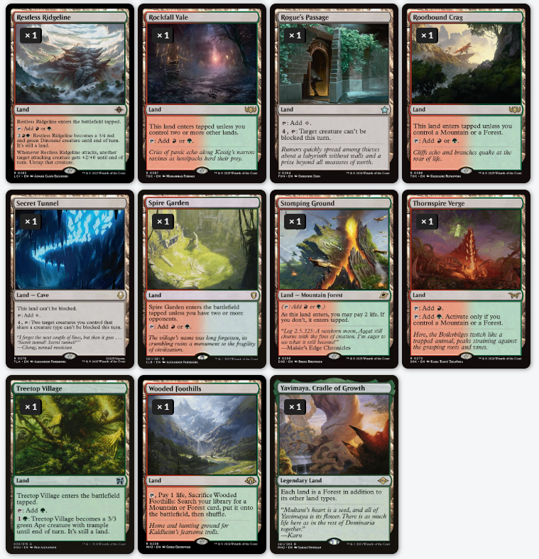 Por ultimo, las tierras usaremos varias que se convierten en criatura o para hacer criaturas imbloqueables.