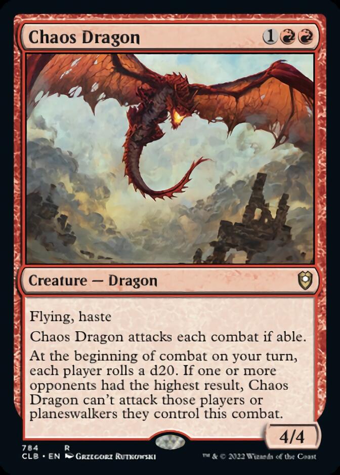 Aunque su trigger de atacar dragones solo sirve para hacer Goad a una criatura de cada oponente, da igual con cuantos dragones ataquemos a ese oponente, el trigger de poner contadores y robar cartas sí que se dispara por cada criatura. Si atacamos con algún dragón a los 3 oponentes, como mucho haremos 3 goads, pero si nos ayudamos de otras cartas para conseguir hacer más ataques forzosos, vamos a robar mucho y nuestro comandante crecerá mucho (y encima es volador, por lo que a poco que crezca puede ser mortal).