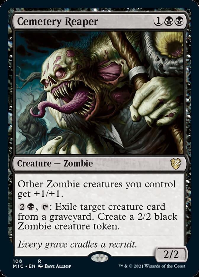 Y por si fuera un efecto tan fuerte, cada vez que completamos una… reanimamos una criatura del cementerio. Es algo de locos para un comandante de coste solamente tres. Una verdadera reina del mal.