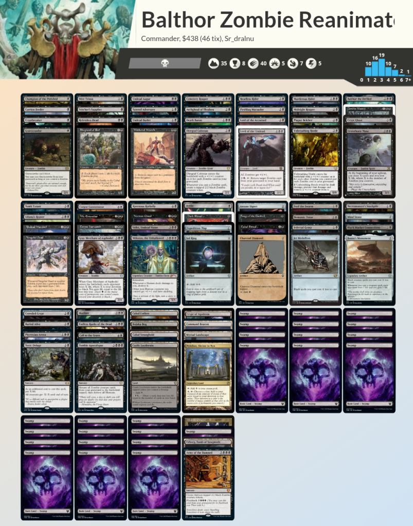 Lo mejor es que, gracias a este zombie, aunque los oponentes reanimen criaturas grandes e indestructibles, el gran número de zombies que entraran de golpe harán que todas las mesas menos la nuestra se queden vacías.